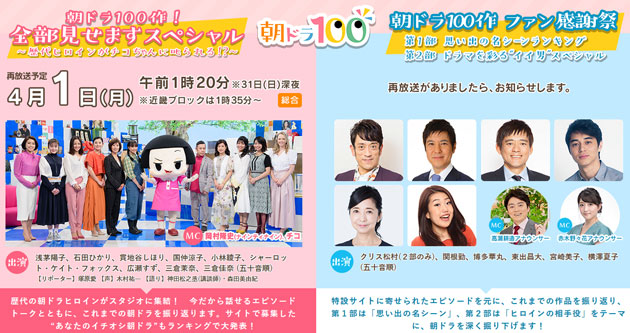 朝ドラ100作 全部見せますスペシャル 歴代ヒロインがチコちゃんに叱られる ほか関連2作品 2019 3 29 30 感想 ディレクターの目線blog