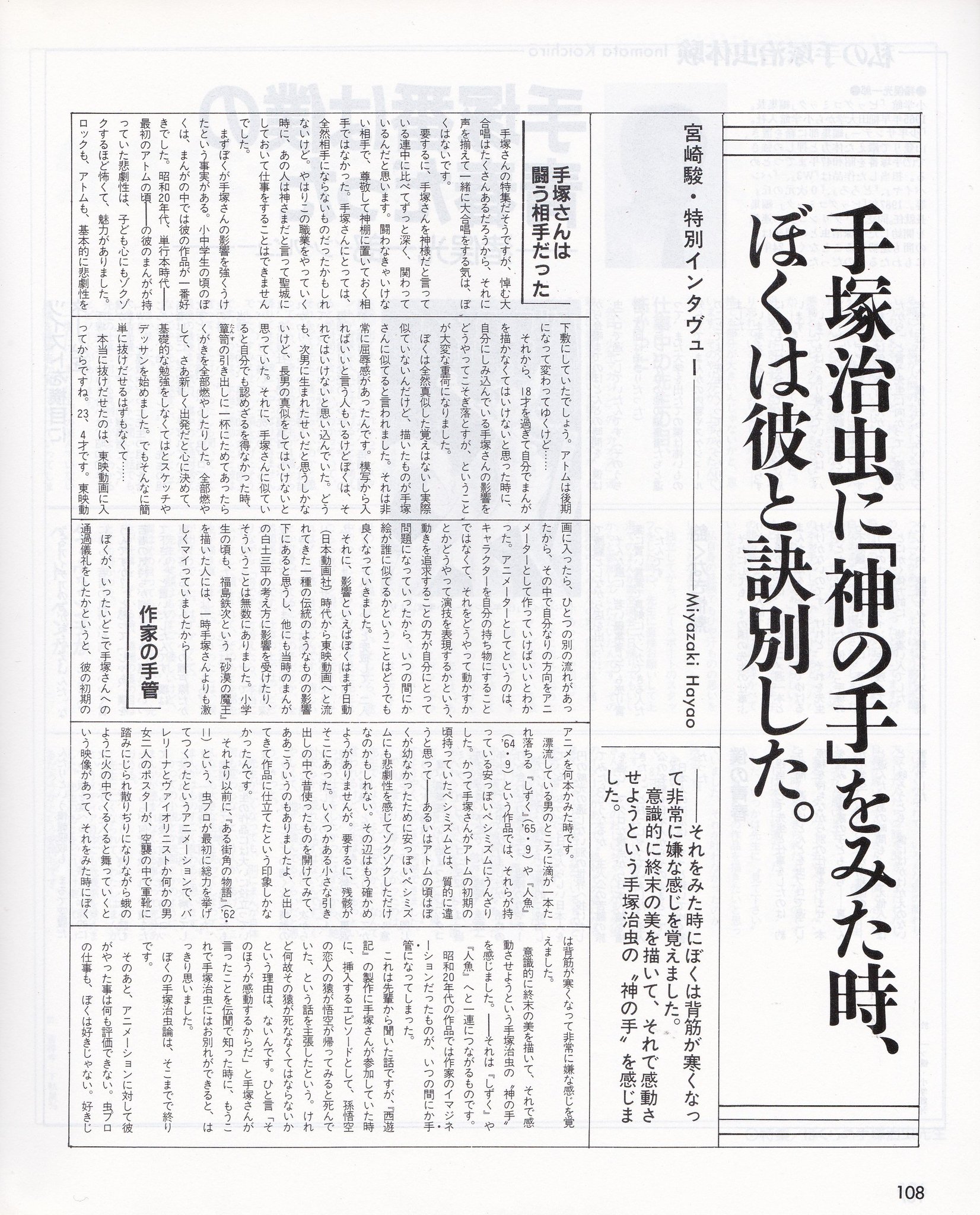 最中義裕 On Twitter 宮崎駿先生のその御発言 Comic Boxインタビュー に関しては アニメに関して これまで手塚さんが喋ってきたこととか主張したことというのは みんな間違いです と断言された 画像2枚目 ことも 当時けっこう話題になりましたね Https