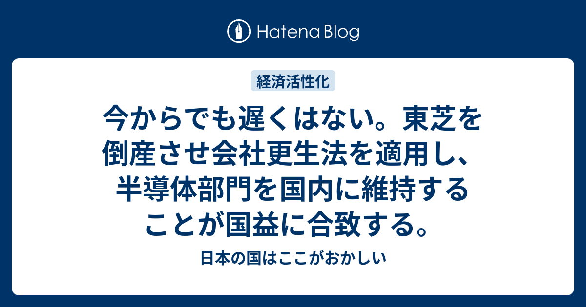 今からでも遅くはない 東芝を倒産させ会社更生法を適用し 半導体部門を国内に維持することが国益に合致する 日本の国はここがおかしい